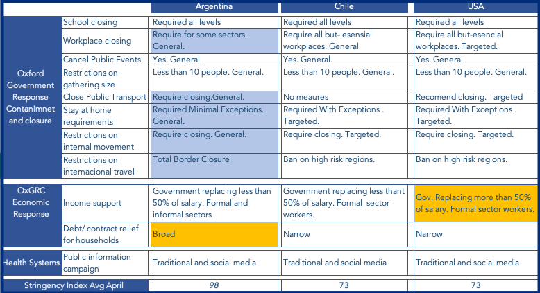 A Case Study is shown below with a comparison and outcomes of Argentina, Chile and USA in April 2020. For further details in another Countries, Industries and you contact us via the page in the Contact Us section or write to hgm@hgmconsulting.cl